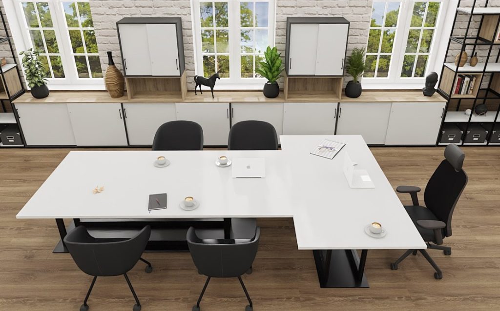 Stoły Amara to idealne rozwiązanie do sal konferencyjnych, a także gabinetów.Uniwersalny design pozwala wykorzystać je jako miejsce do pracy oraz przestrzeń do spotkań.W ofercie występuje kilka możliwości konfigurowania oraz dwie opcje stołów – symetryczny i asymetryczny.