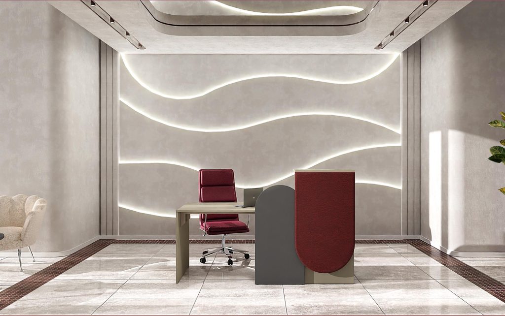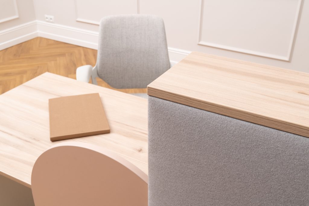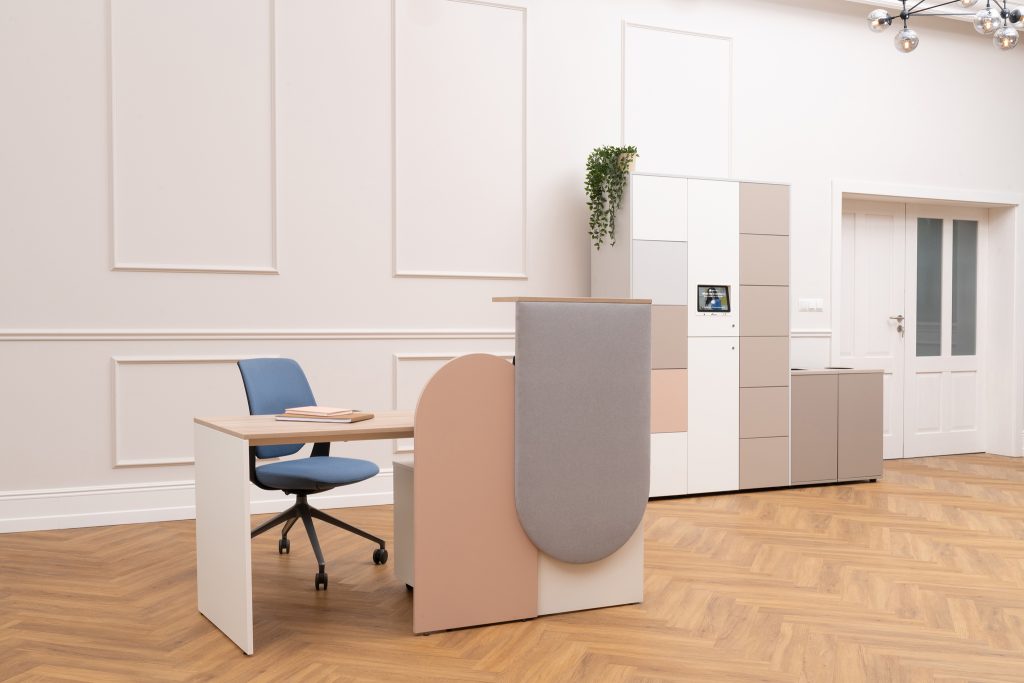Averto to kolekcja mebli biurowych, która łączy w sobie przestrzeń i funkcjonalność. Kolekcja obejmuje ladę, która jest idealnym rozwiązaniem dla niewielkich pomieszczeń, oferując wysoką funkcjonalność i niestandardową estetykę dzięki panelowi tapicerowanemu.